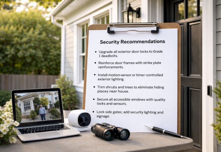 A comprehensive home security assessment from the property line to the interior of your home.